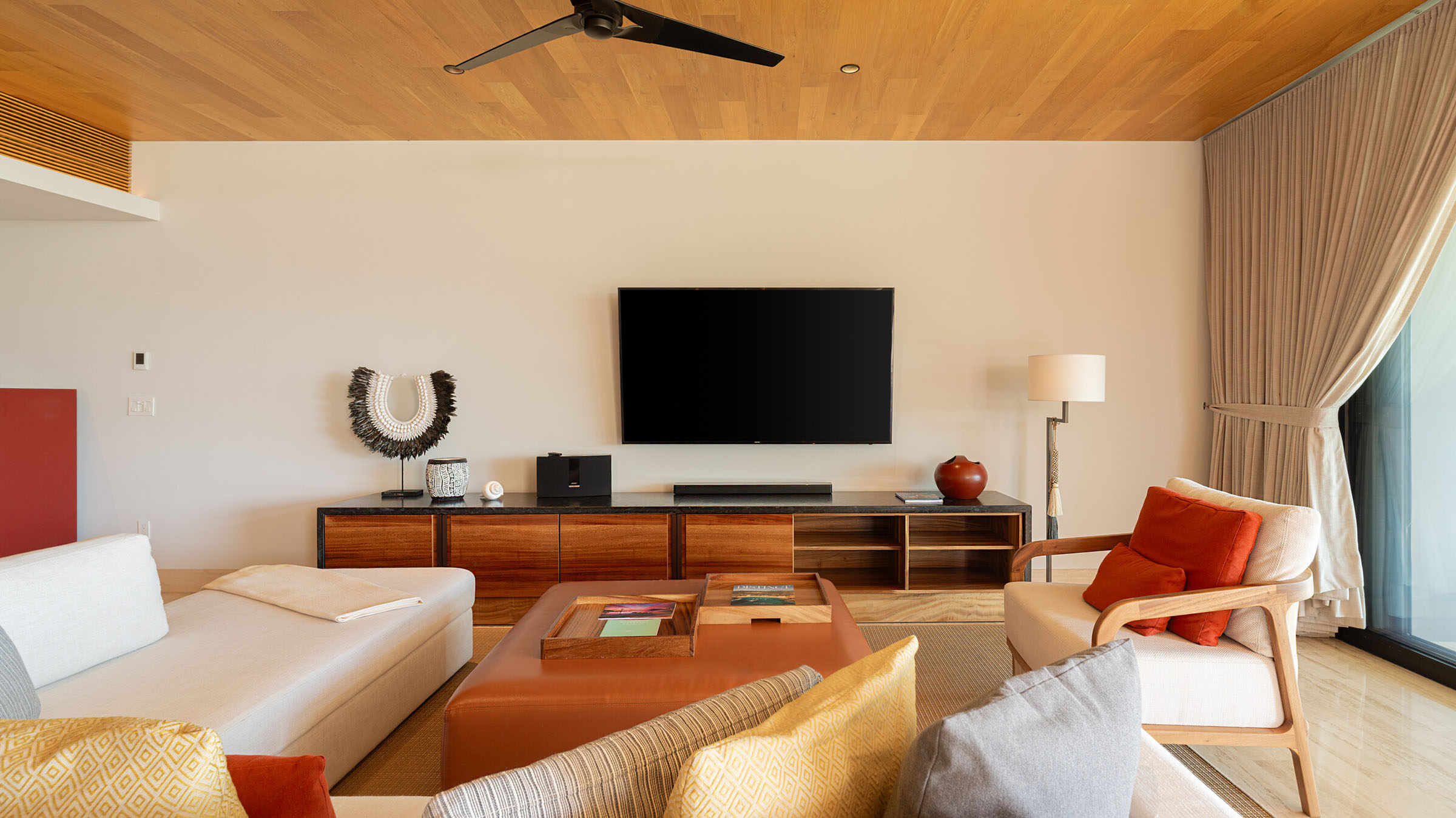 As one of the most private and spacious residences available, Residence 7121 spans over 3,700 square feet and features three bedrooms and four bathrooms. This garden level residence is ideally situated to take in the breathtaking sunrises over Santa Maria Bay from its spacious outdoor terrace and lawn, which also features a plunge pool and outdoor kitchen.