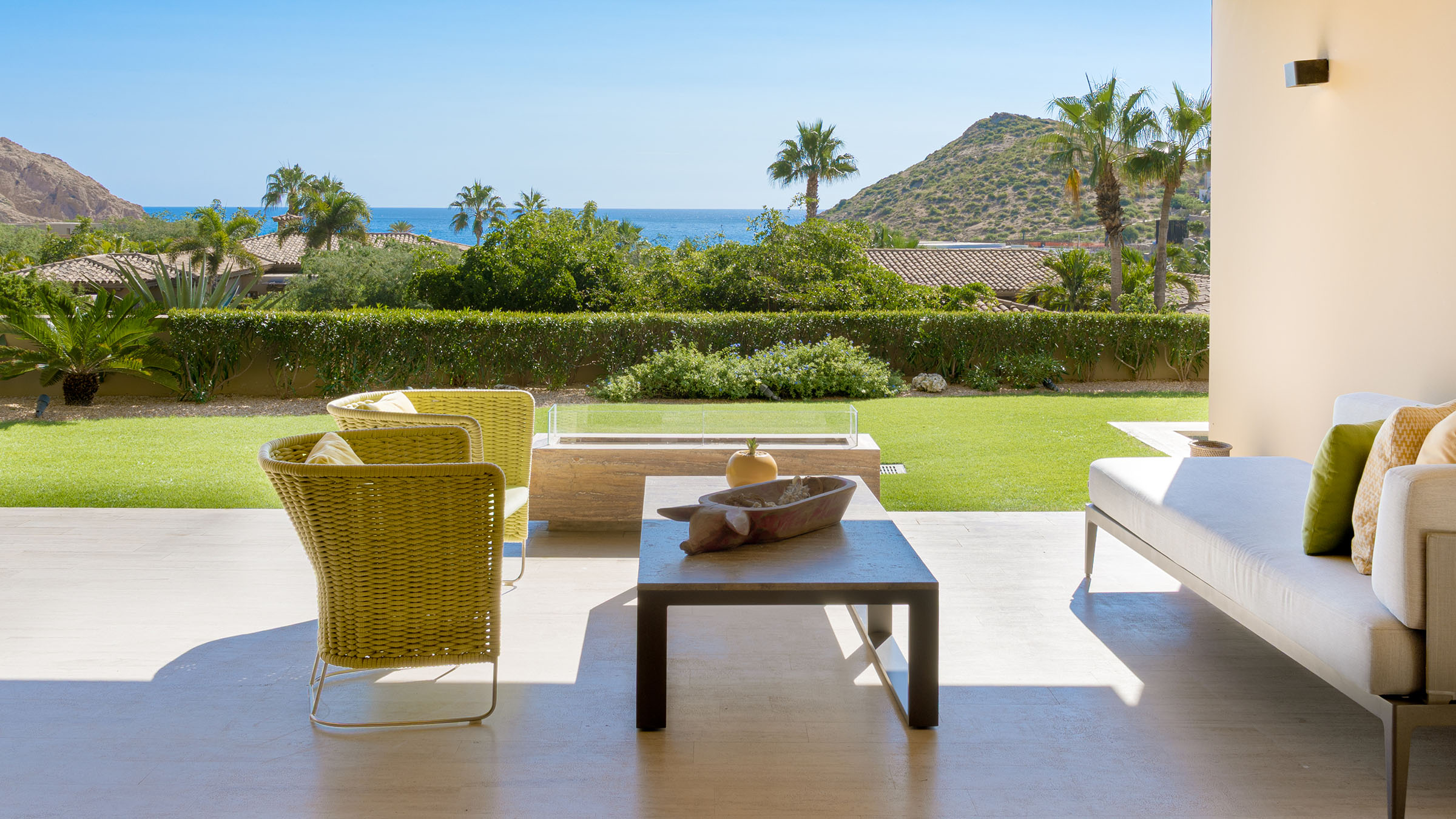 Expansive terraces with fire pits, outdoor kitchens, vanishing walls and breathtaking views of Santa Maria Bay